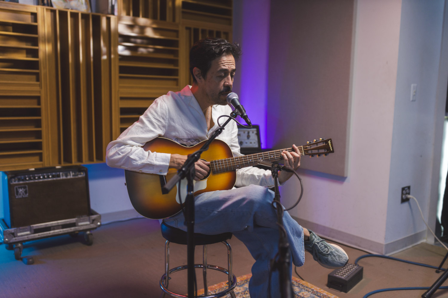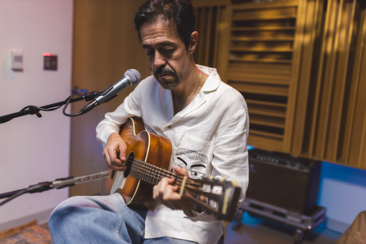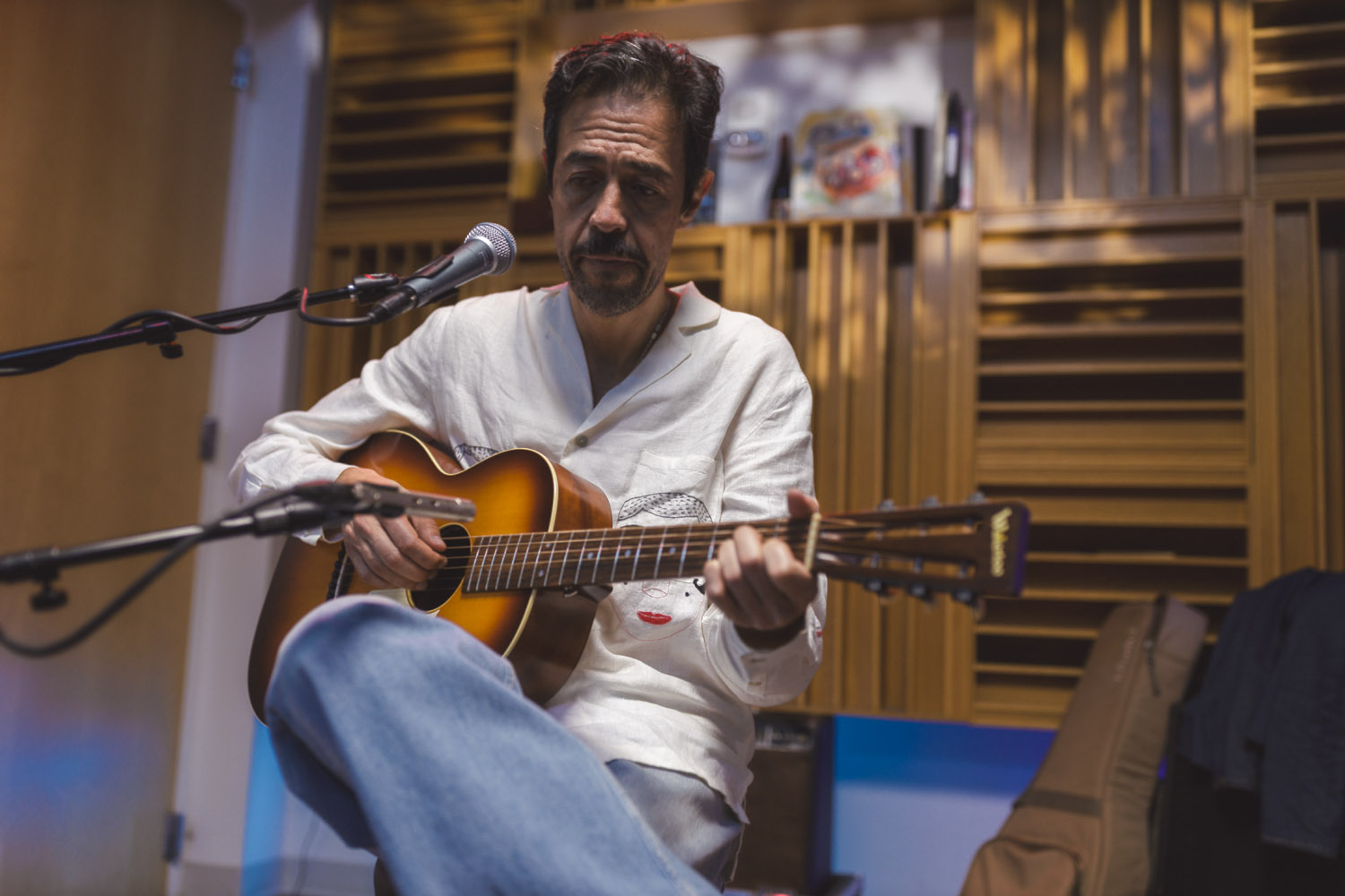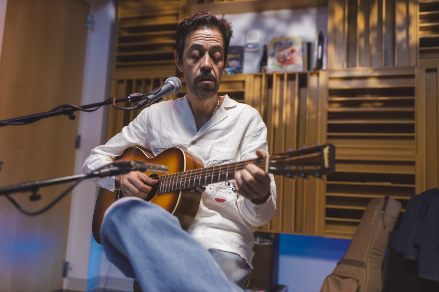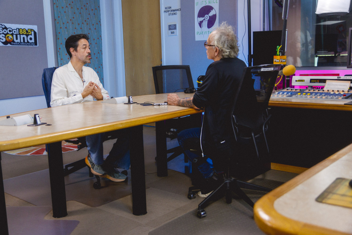 When Meme Del Real walked back into The SoCal Sound studios, it felt like a reunion. A bit longer than a year ago, Meme was here alongside his legendary band Café Tacvba, one of Mexico’s most innovative and genre-defying groups. For this visit, the acclaimed keyboardist, songwriter, and producer returned not as part of an ensemble — but as a solo artist discussing his new albume La Montaña Encedida with Nic Harcourt and performing 4 songs in and exclusive acoustic setting.