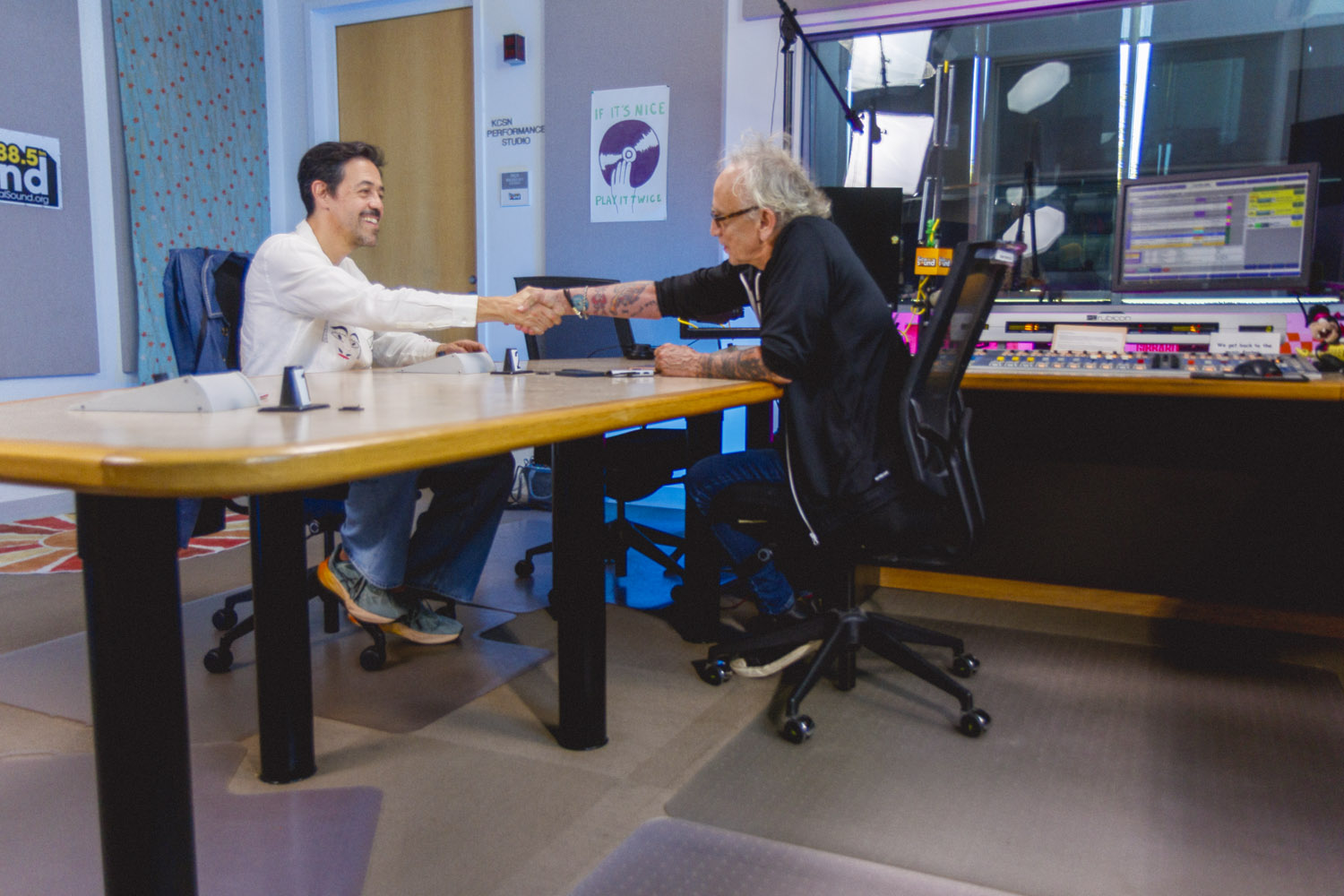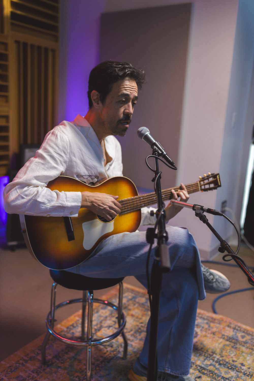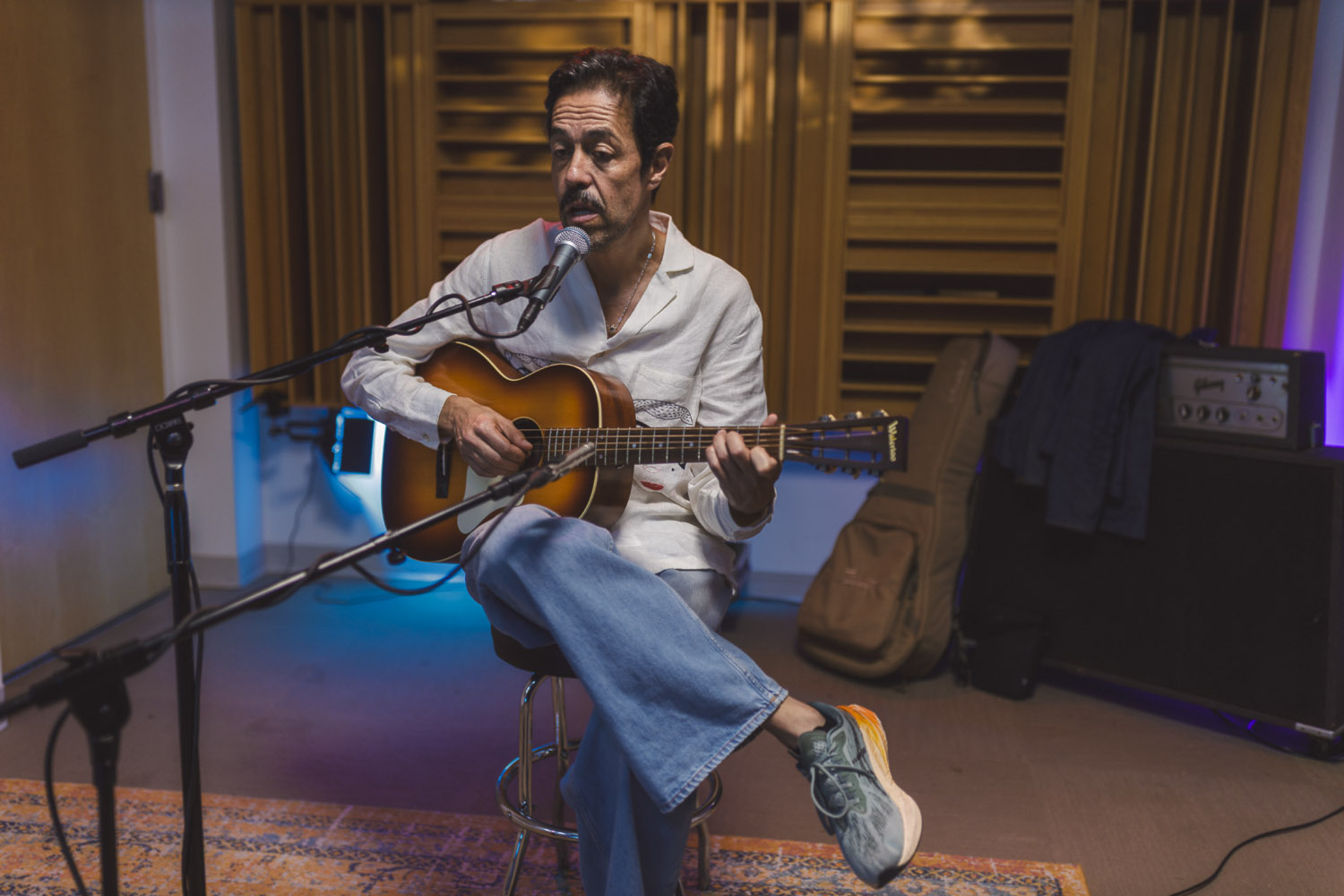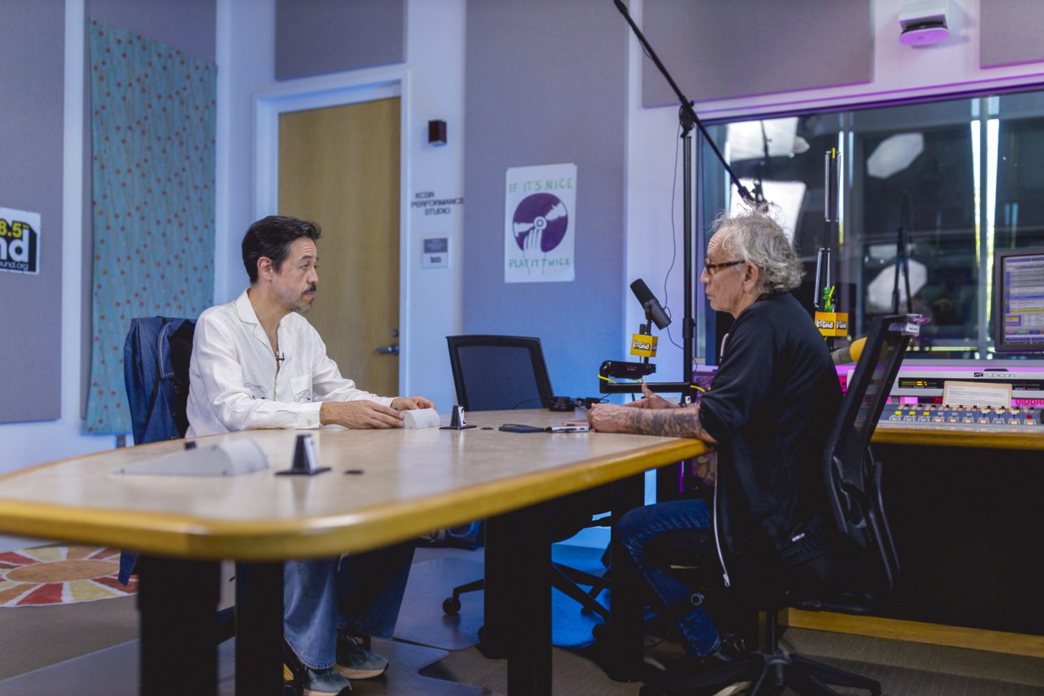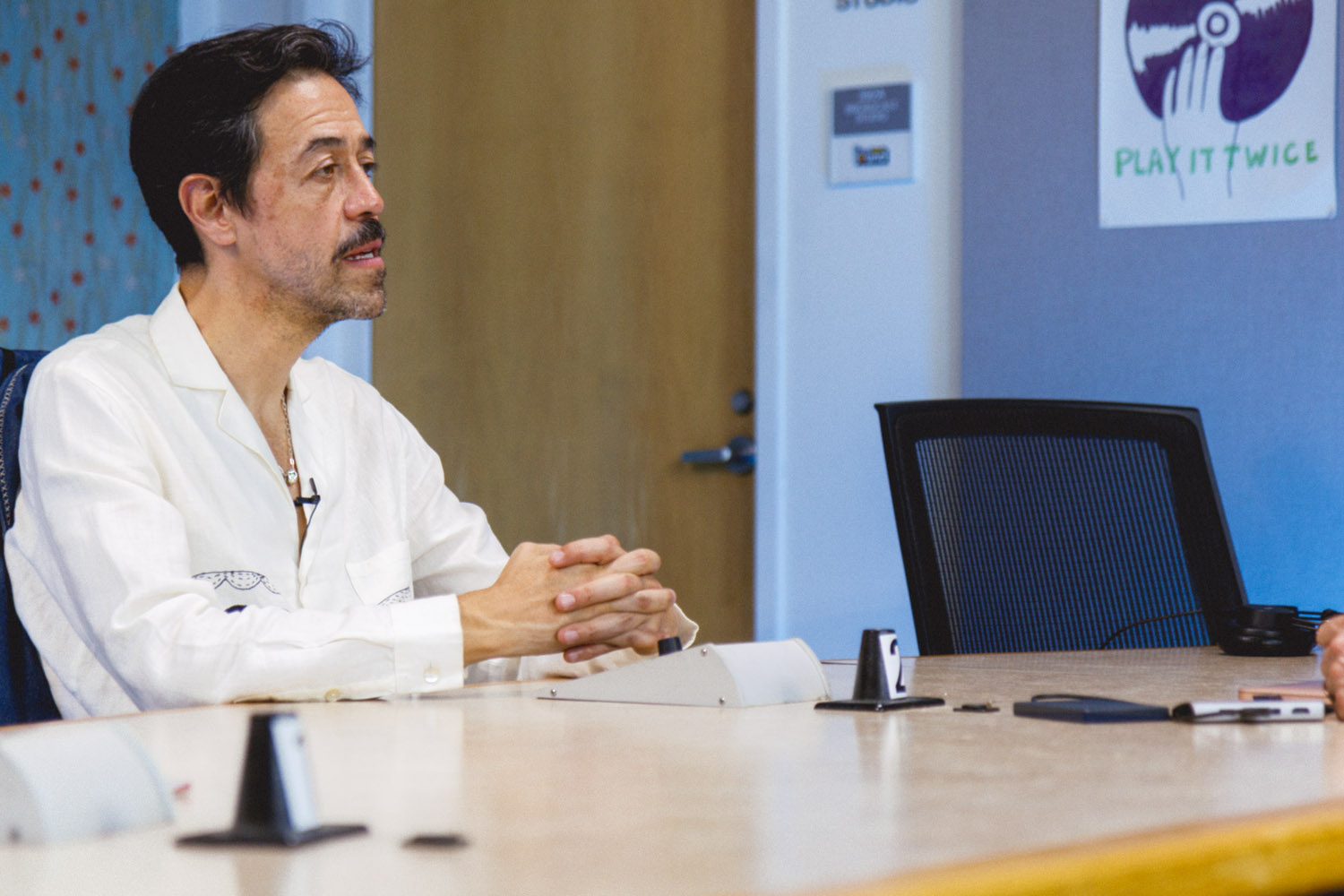 When Meme Del Real walked back into The SoCal Sound studios, it felt like a reunion. A bit longer than a year ago, Meme was here alongside his legendary band Café Tacvba, one of Mexico’s most innovative and genre-defying groups. For this visit, the acclaimed keyboardist, songwriter, and producer returned not as part of an ensemble — but as a solo artist discussing his new albume La Montaña Encedida with Nic Harcourt and performing 4 songs in and exclusive acoustic setting.